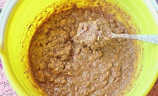 - Roer tot een dikke massa is verkregen.