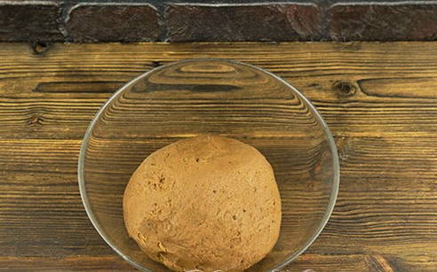 - Wanneer het product strak wordt, beginnen we met onze handen te kneden. We vormen een gladde bal.