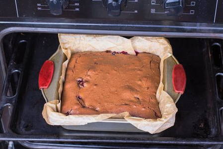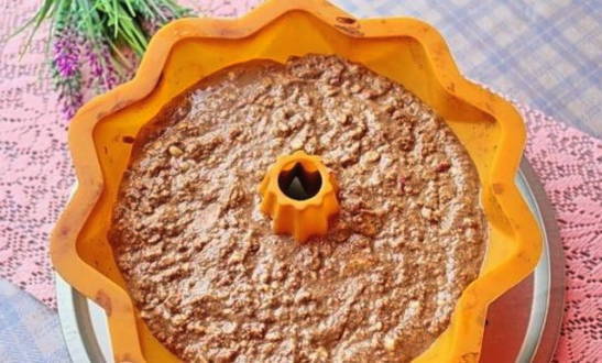 - Gearomatiseerde chocoladetaart met noten in de oven