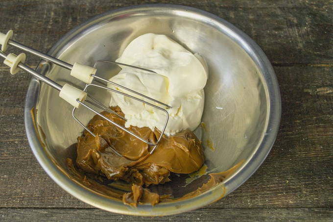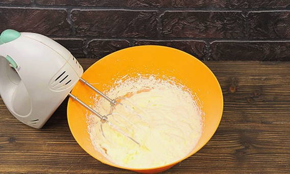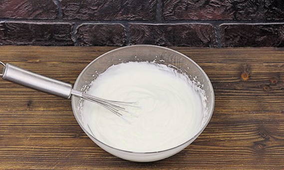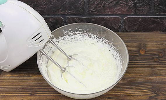 - Laten we teruggaan naar het maken van de room. Voor hem moet je de resterende 250 ml room grondig kloppen voor de room.