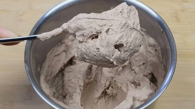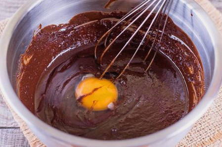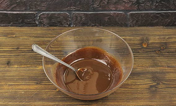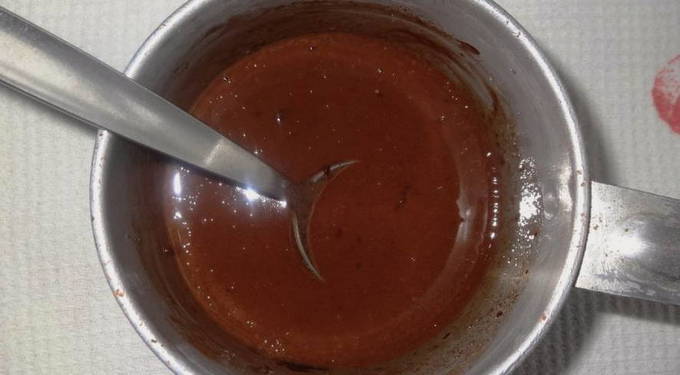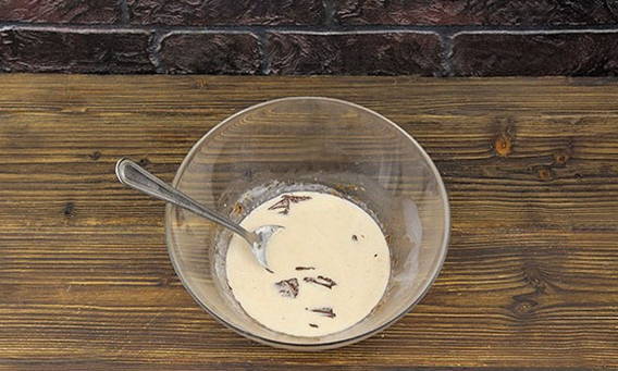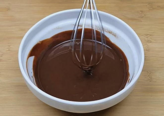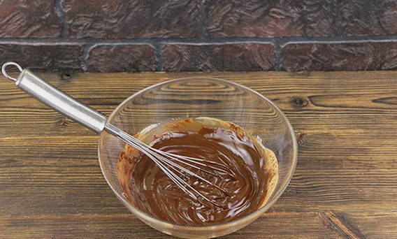 - Bereid het glazuur voor om de bovenkant te versieren. Klop hiervoor gesmolten chocolade en room.