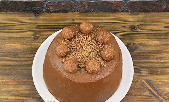 - We versieren het dessert met truffels en chocoladeschilfers. We zetten in de koelkast om te bevriezen.