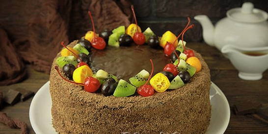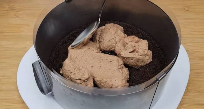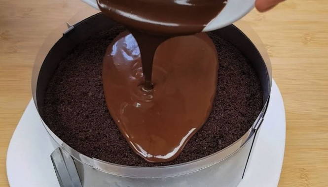 - Een heldere en delicate chocoladetaart is klaar. Serveer lekkernijen op tafel!