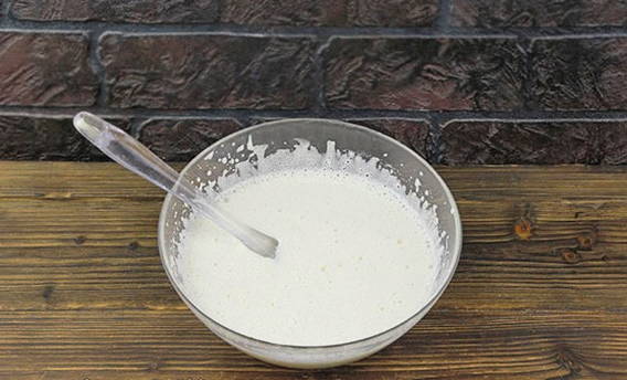 - Giet hier melk en plantaardige olie. Kneed het voedsel met een lepel of spatel.