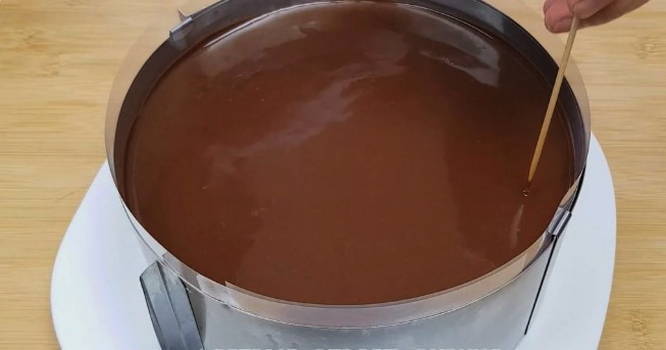 - We zetten de cake in de koelkast totdat het glazuur hard wordt.