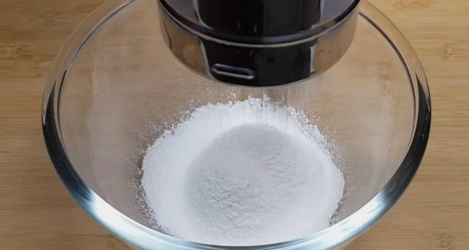 - Terwijl u de test kunt doen. Zeef bloem in een ruime schaal.