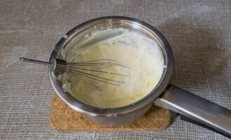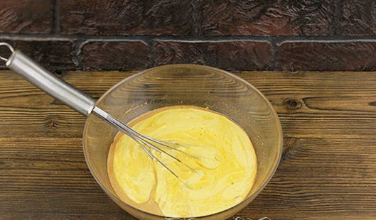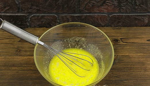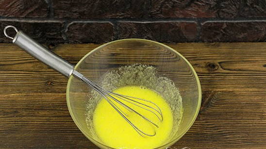 - Smelt de boter, laat afkoelen en giet het bij het eiermengsel.