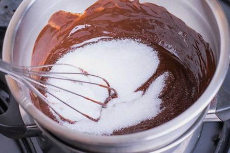 - We verwarmen de melk en roeren er cacao doorheen tot een homogene chocolademassa is verkregen.