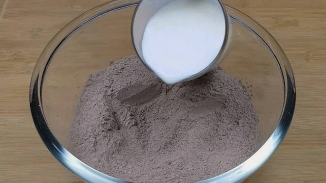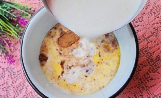 - Roer de ingrediënten en giet ze met melk op kamertemperatuur.