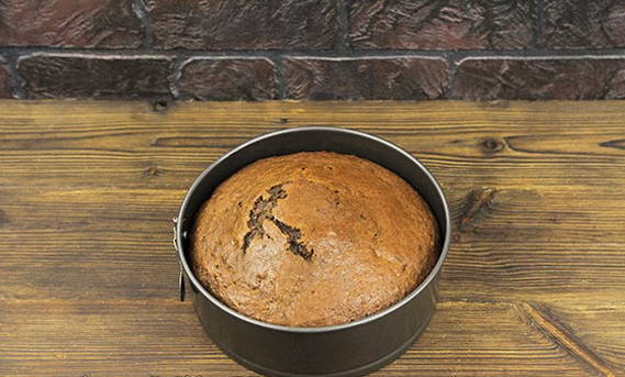 - We bakken ongeveer een uur op een temperatuur van 160-180 graden. We controleren de gereedheid met een tandenstoker.