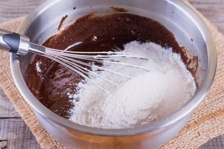 - Voeg cacao toe aan de bloem.