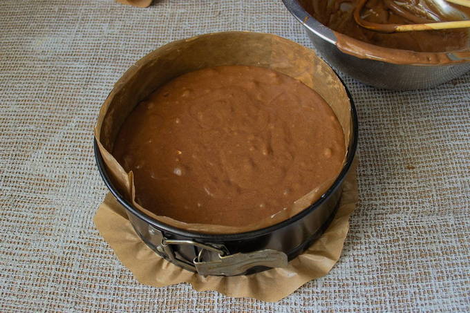 - Gearomatiseerde chocoladetaart met noten in de oven