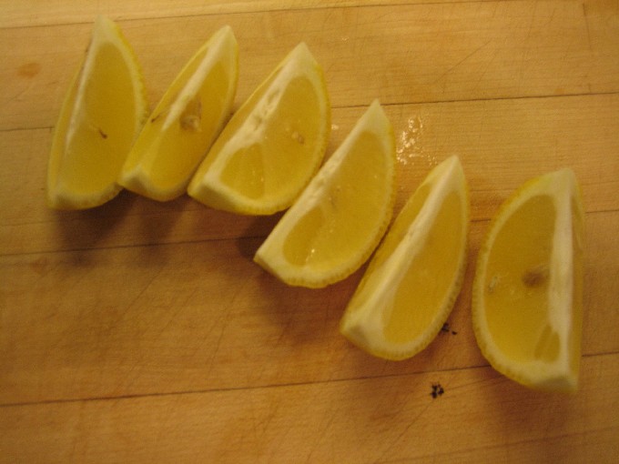 - Snijd de citroen ook in verschillende delen.