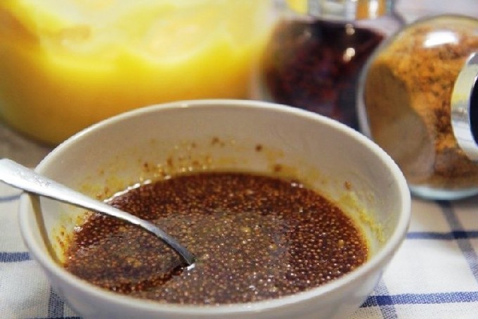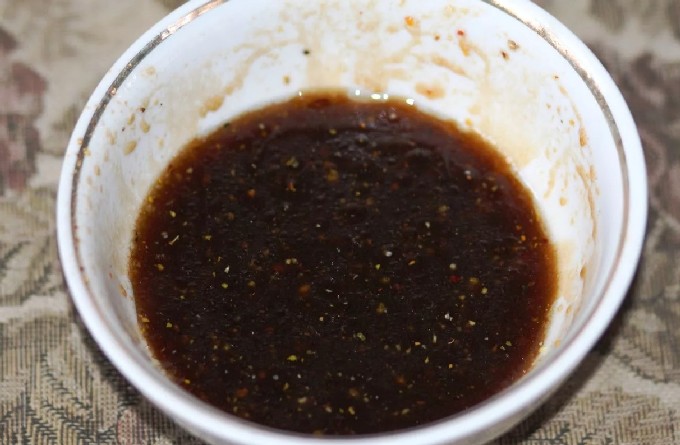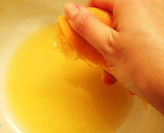 - Pers het sap uit een sinaasappel en meng het met een mengsel van pepers, honing, zout en sojasaus.
