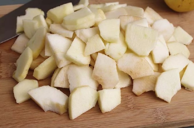 - Bereid de appels voor, verwijder het klokhuis en snij in vrij grote stukken.