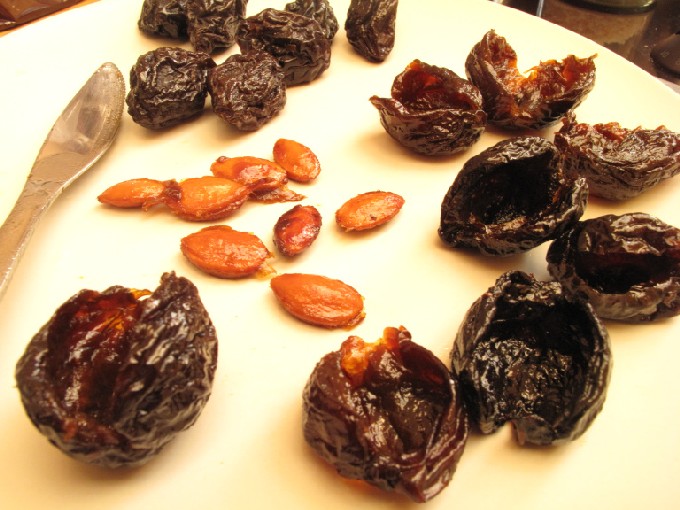 - We wassen de pruimen en halen de zaden eruit.