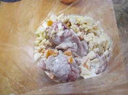 - Doe het vlees in een aparte kom en marineer 1 uur.