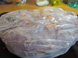Doe aan het einde van de marineerperiode de stukjes konijnenvlees in een hoes en zet het ene uiteinde vast met een clip.