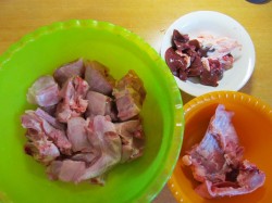 Houd de ingewanden en ribben apart voor soep of bouillon. We zullen ze niet bakken.