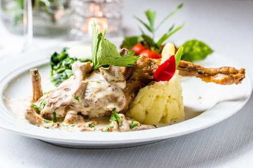 - Serveer het gebakken konijn warm.