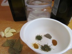- Zout en specerijen (munt, rozemarijn, Provençaalse kruiden, laurierblaadjes) naar smaak.