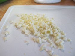 - Pel en hak de knoflook in een knoflookkom.