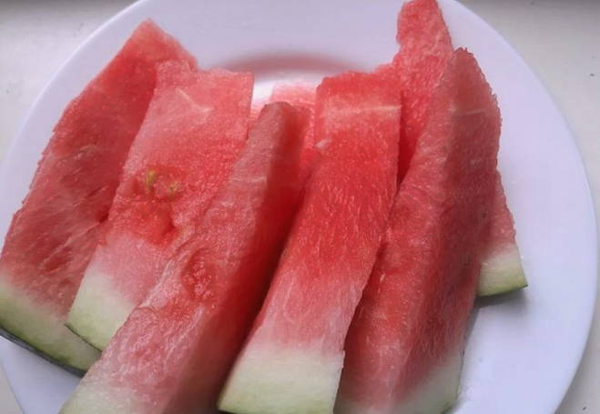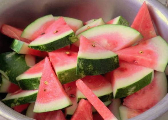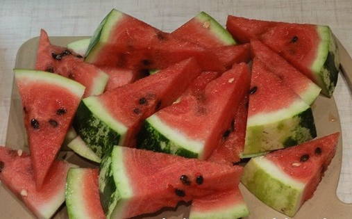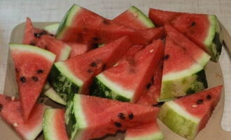 - We beginnen de stukjes watermeloen neer te leggen. Kook water onmiddellijk.