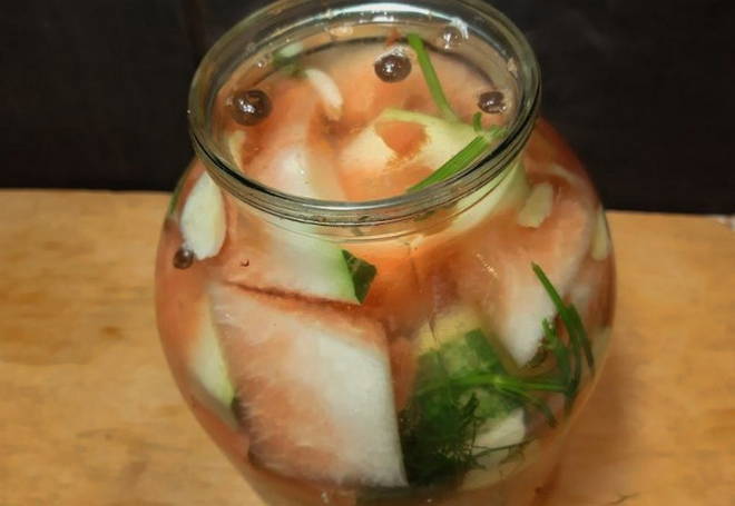 Gezouten watermeloenen in een pot zonder sterilisatie voor de winter - het beste recept