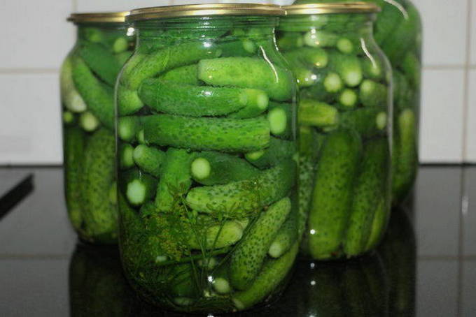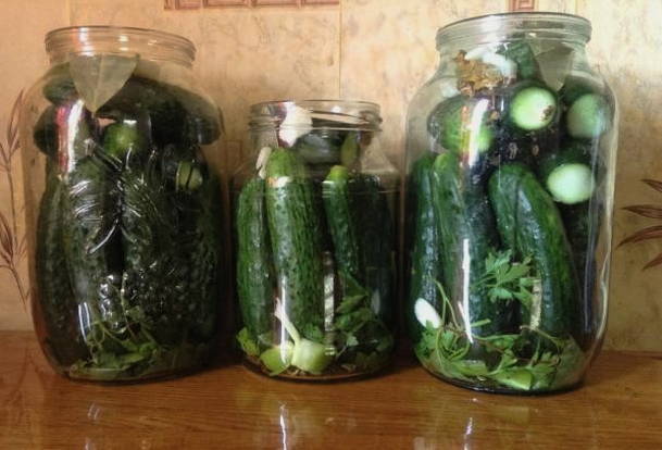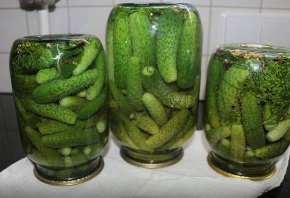 - Ingelegde komkommers in potten van 3 liter zonder sterilisatie