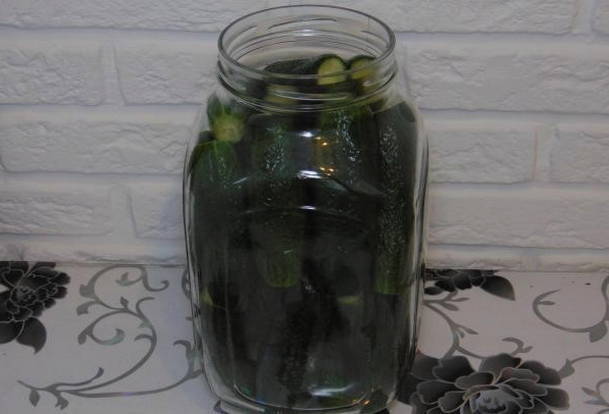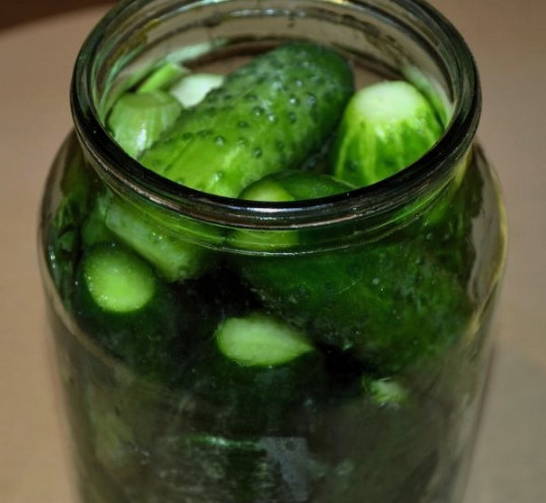 Ingelegde komkommers in potten van 3 liter zonder sterilisatie