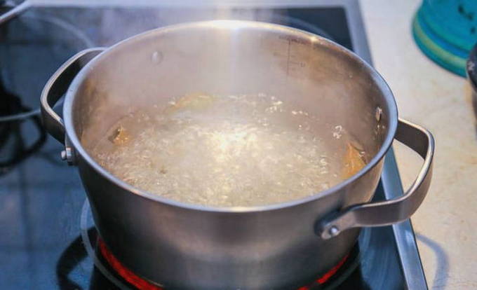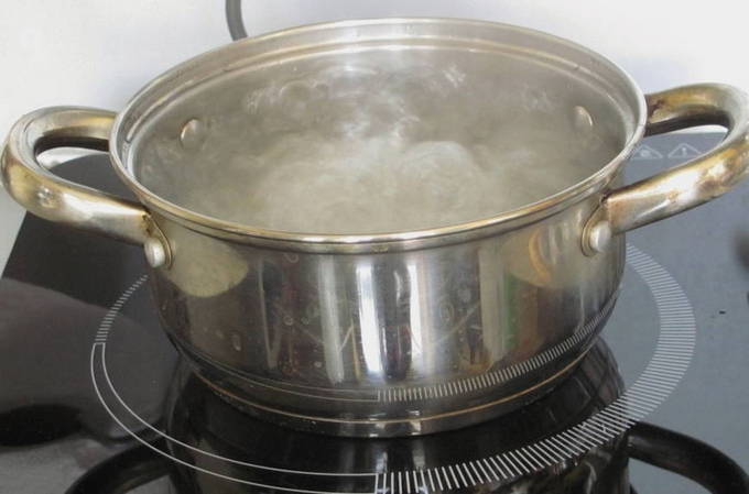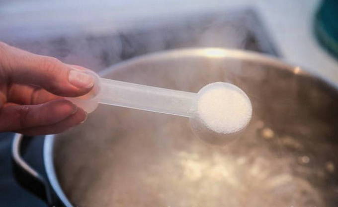 - Kook water apart en roer er zout door. Houd het vuur totdat het droge ingrediënt is opgelost.