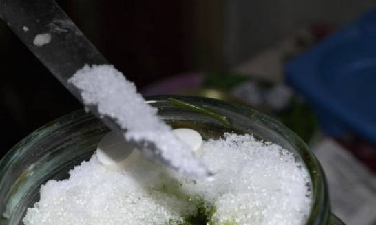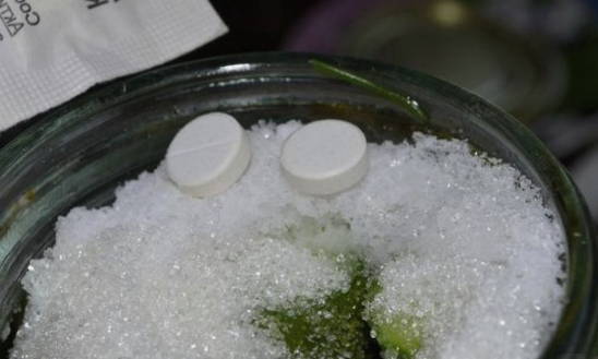 - Voeg vervolgens suiker en twee aspirinetabletten toe.