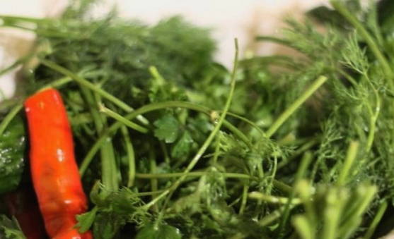- We wassen de dilleparaplu's en bladeren. Leg ze op de bodem van een grote pan.