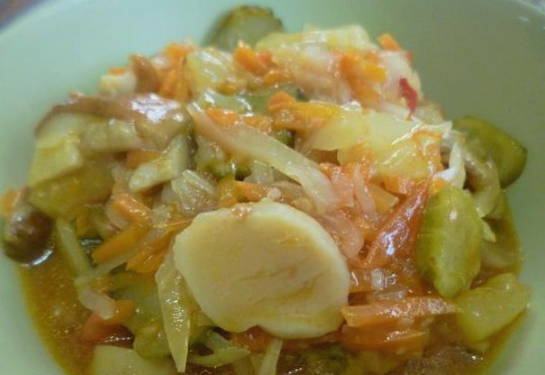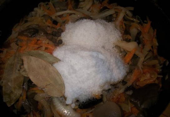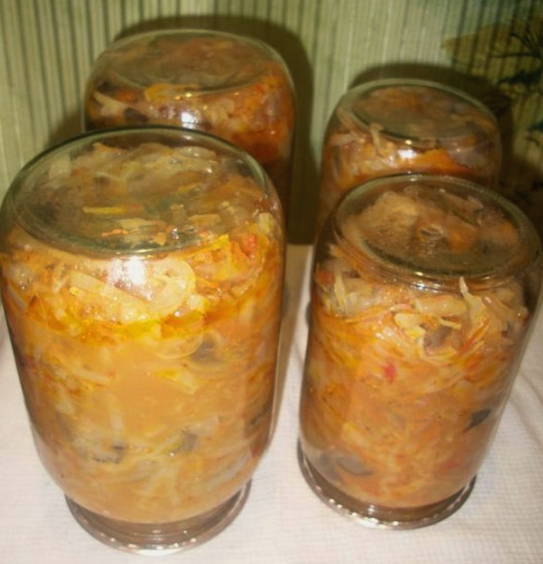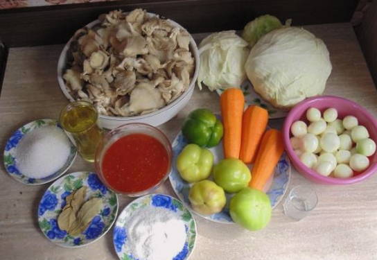 Een smakelijk mengelmoes voor de winter kan worden bereid van champignons, kool en andere groenten. Een lichte traktatie zal een aanvulling zijn op veel zelfgemaakte gerechten. Het kan ook worden geserveerd met bijgerechten als een voedzame maaltijd.