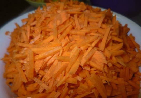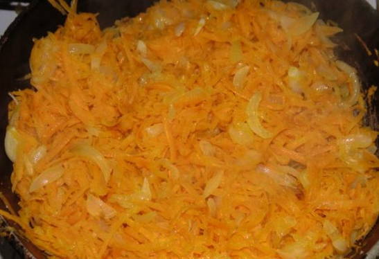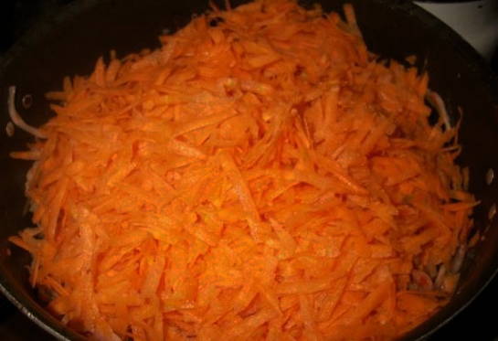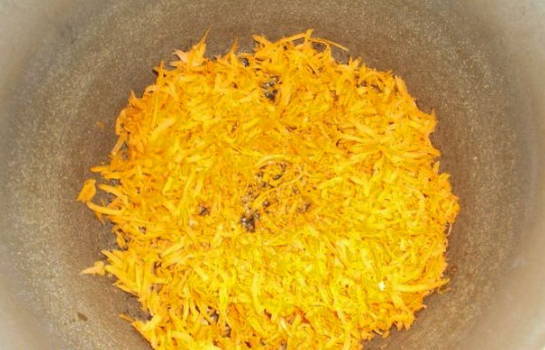 - We raspen de wortels en sudderen ze in een pan met een dikke bodem in plantaardige olie.