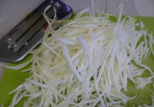 - Rasp witte kool met dunne reepjes.