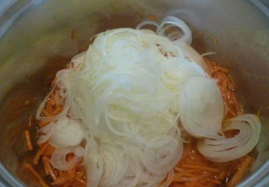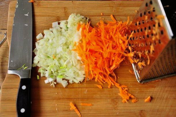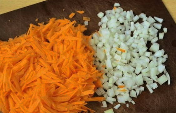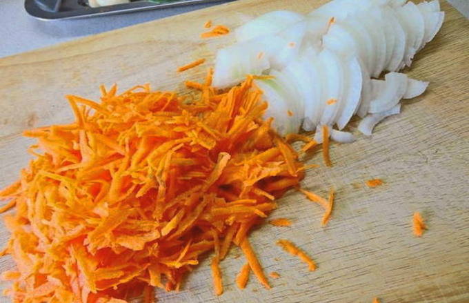 - Snijd uien met wortelen op elke manier die bij u past.