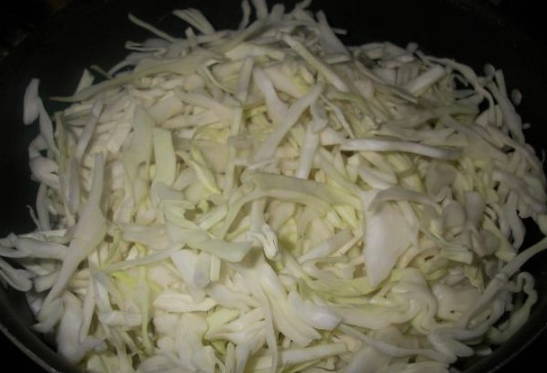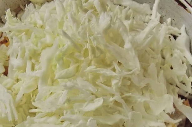 - Hak de kool fijn, eerder gewassen en geschild van de bovenste lagen.