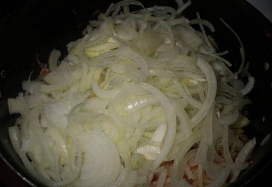 - Voeg er dan de ui aan toe.