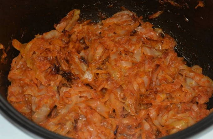 - We doen de hoofdingrediënten in een gewone kom met plantaardige olie. Kook de inhoud, voeg zout, suiker en kruiden toe. Laat vervolgens op laag vuur ongeveer 40 minuten sudderen.