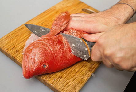 - We demonteren de vis en scheiden de filet van de botten.