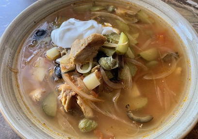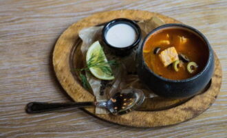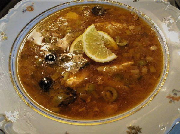 - Solyanka is er klaar voor. Voor het serveren gebruiken we schijfjes citroen. Eet smakelijk!