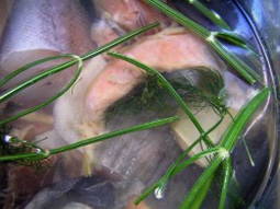- We vangen de forel uit de bouillon, we selecteren de botten uit de filet.
