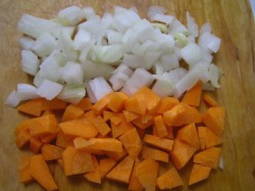 - We lossen de ui op in stukjes.