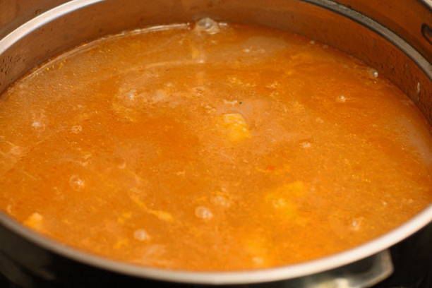 - Giet water in een pan en breng de bouillon aan de kook.