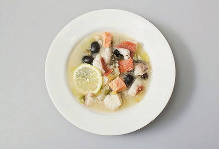 Deze mengelmoes wordt gekookt in een pan en lijkt daardoor meer op een salade dan op een soep. Naast vis en de gebruikelijke olijven met kappertjes en komkommers bevat het recept ook zuurkool en ingelegde champignons, dus de smaak is zeer rijk.