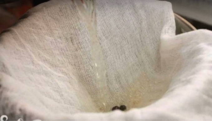 - Als de bouillon gaar is, filteren we deze.