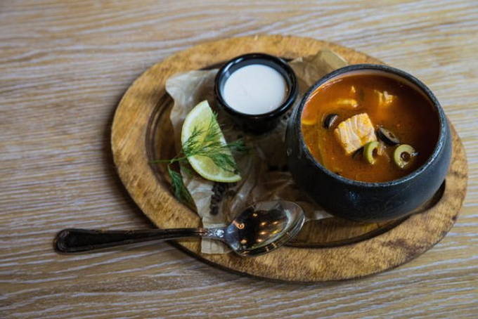 - Solyanka is er klaar voor. Voor het serveren gebruiken we schijfjes citroen. Eet smakelijk!
