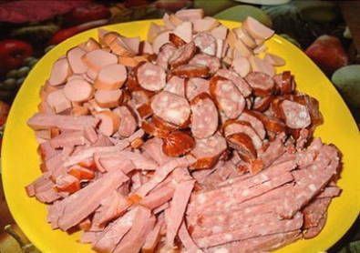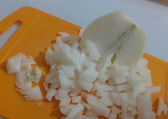 - Op dit moment zullen we worstjes met worst bereiden. We snijden ze in kleine blokjes of cirkels.