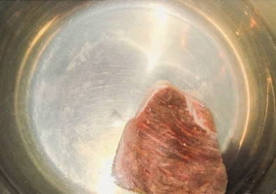 - Doe een stuk rundvlees in een pan en vul deze met water. We zetten de bouillon op het fornuis om te koken.